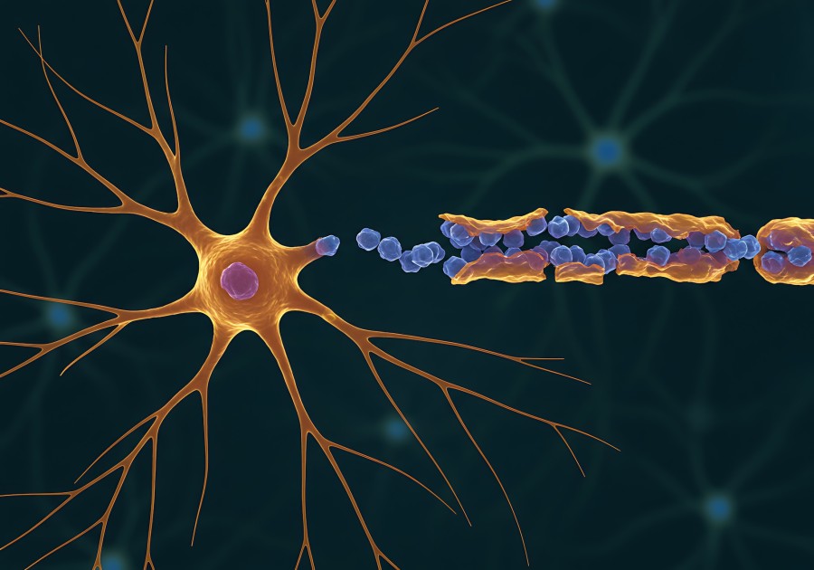 Lésion de la gaine de myéline caractéristique des maladies démyélinisantes. Crédit : Adobe Stock.